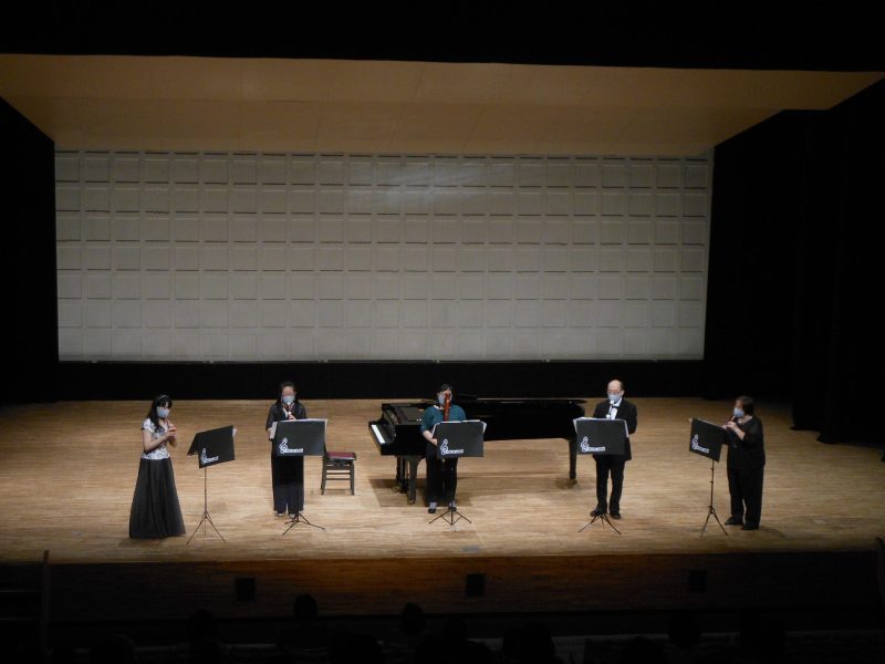リコーダーアンサンブルで開演してクラリネット、ピアノ、サックス、フルート、最後にピアノを披露致しました。