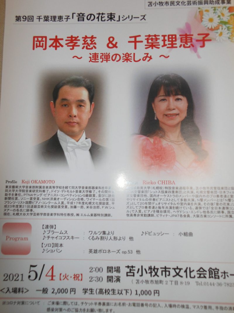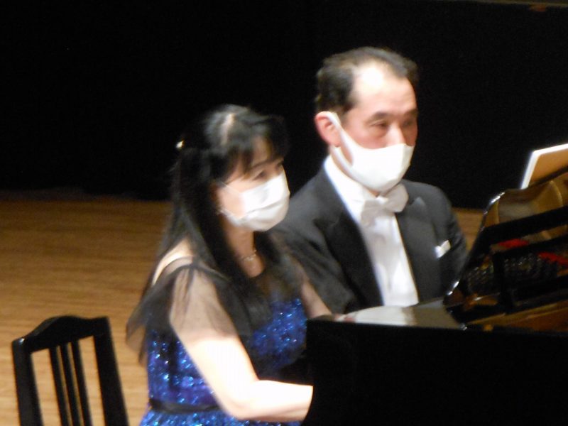 ブラームスのハンガリー舞曲で開演して「ワルツ集」、ドビュッシー「小組曲」とⅠ部を終了して、Ⅱ部は岡本先生のソロ3曲(ショパン「英雄ポロネーズ」他)でした。素晴らしい演奏に客席から大きな拍手を頂きました。