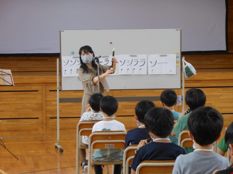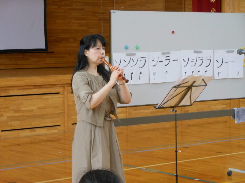 ・市内の小学校3年生に「リコーダー教室」で指導。 市の教育委員会からの依頼で、3年生にリコーダーの指導に行きました。