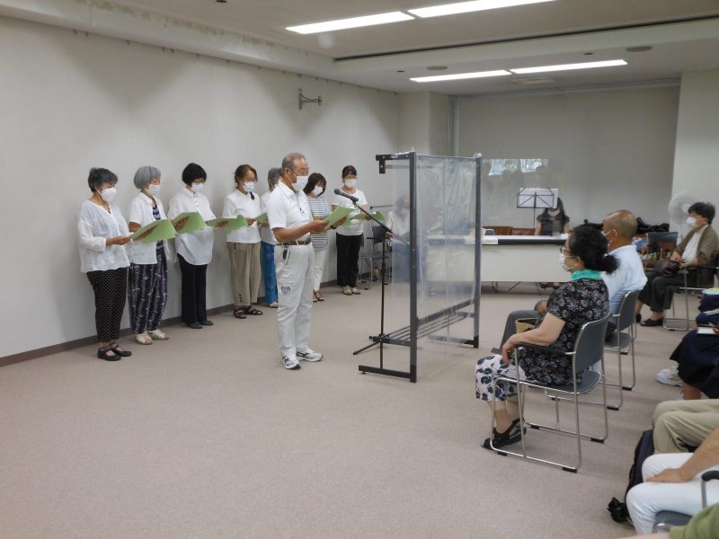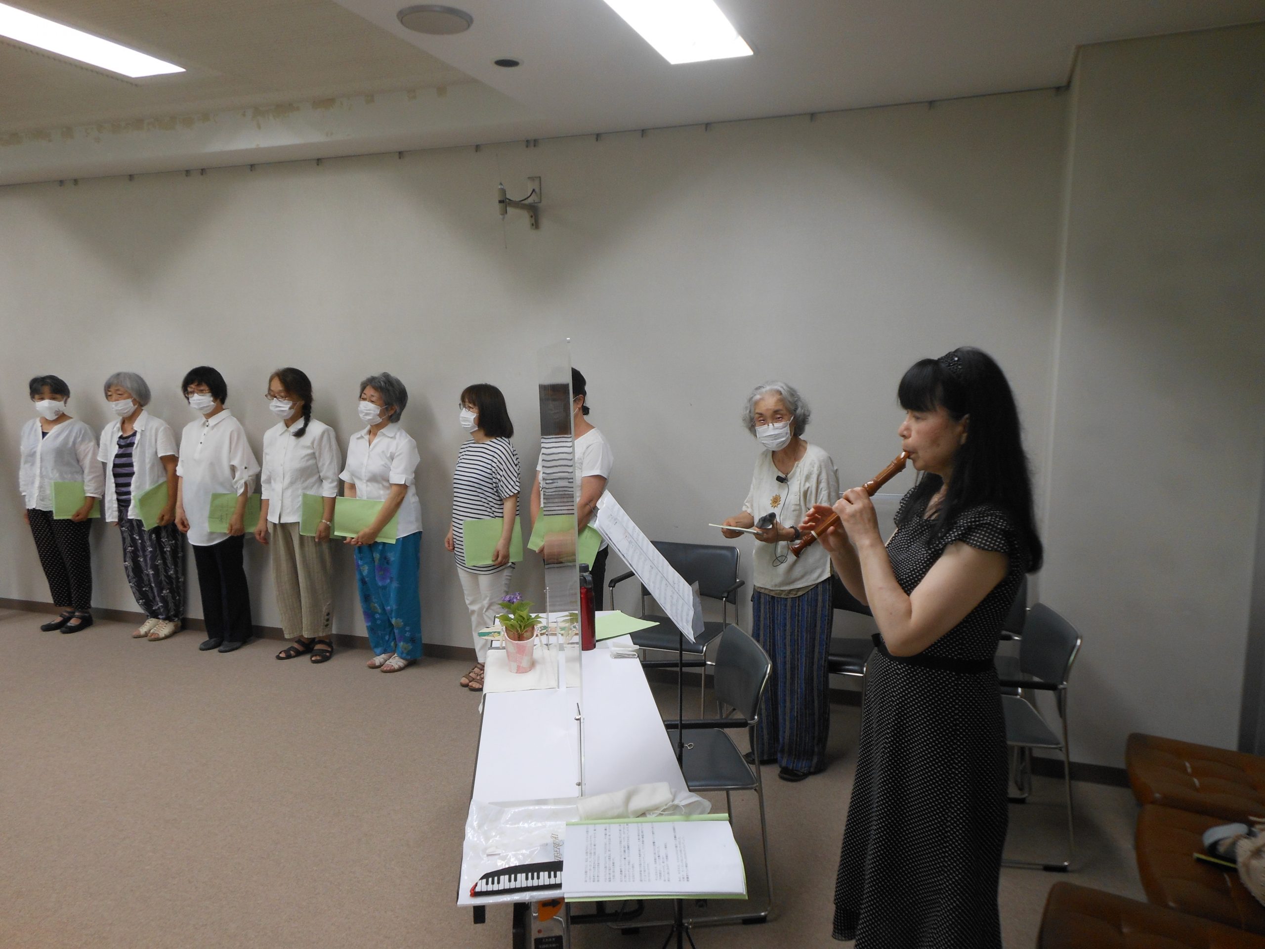 ・「原爆朗読会」にてリコーダー演奏。 原爆記念日に毎年ピアノ演奏していましたが、今年は市内の図書館でリコーダ -を5曲演奏。最後は「ふるさと」で終演致しました。