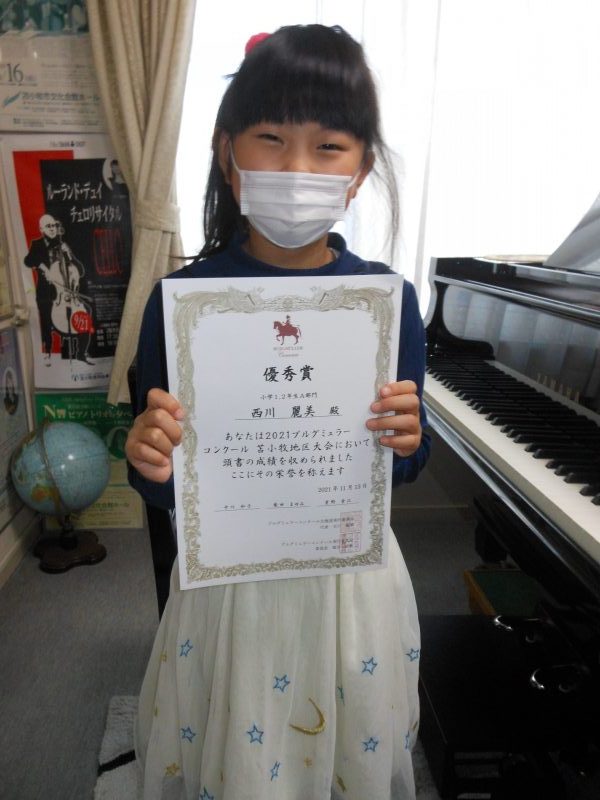 | 11月 | ♪ 「ブルグミュラーコンクール」で「優秀賞」受賞。 ファイナル出場へ。