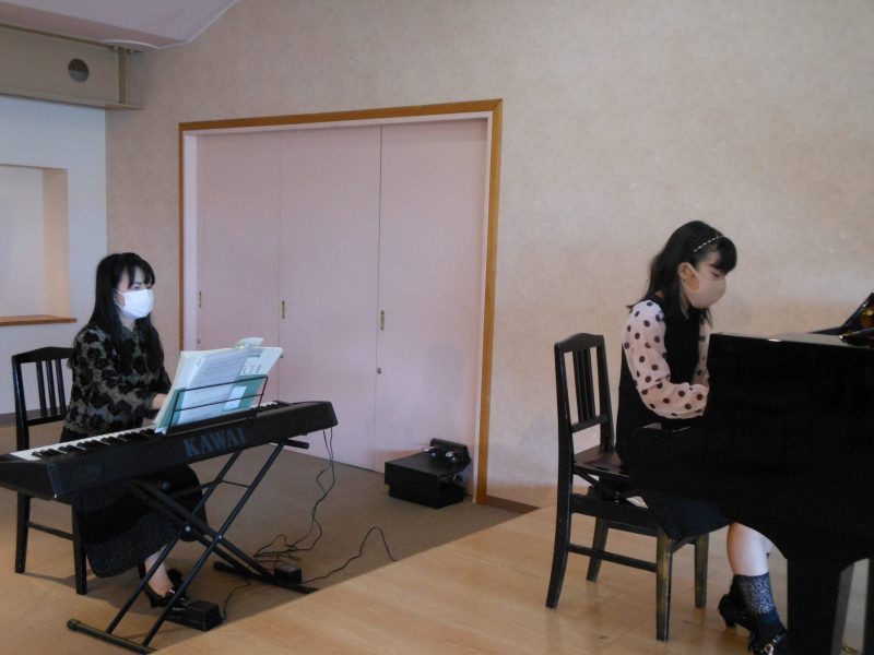 連弾の他にピアノソロ、うた、リコーダ、二台のピアノで門下生の練習の成果が存分に発揮でき、楽しい発表となり温かい拍手を沢山いただけました。