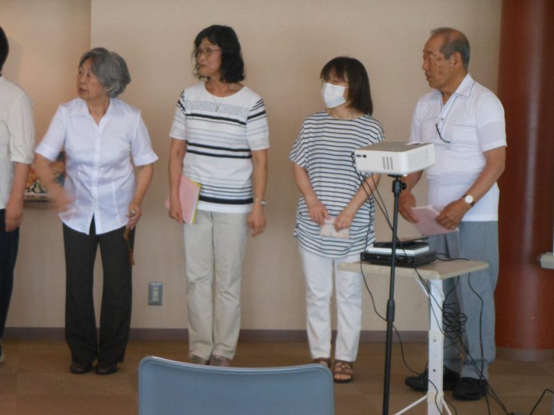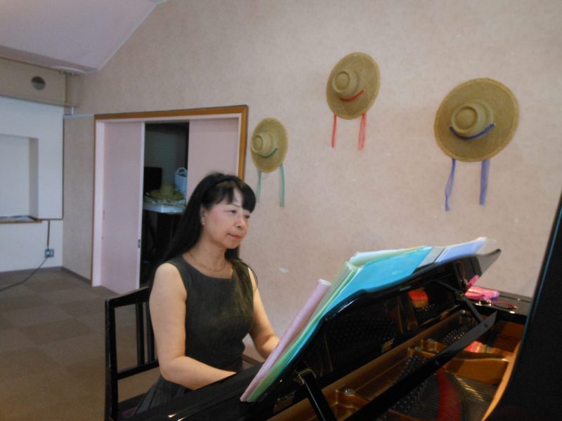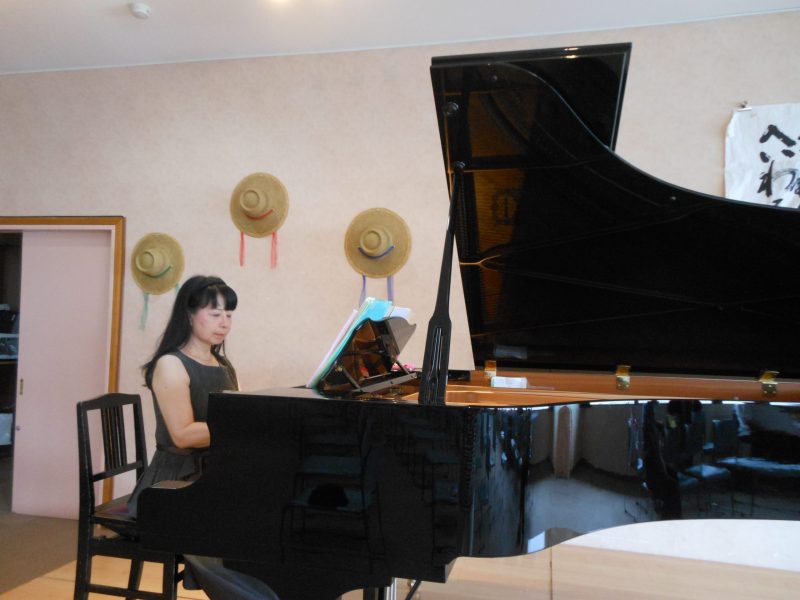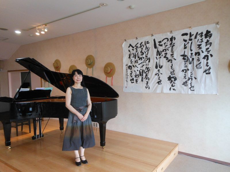 ♪ 「原爆朗読会」   毎年恒例の8月6日に「原爆朗読会」で朗読の合間にピアノを演奏。開始前にも「花の曲」を