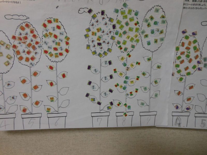 -ル、演奏会、ミニ発表参加で頑張った分だけお花にシールを貼りました。