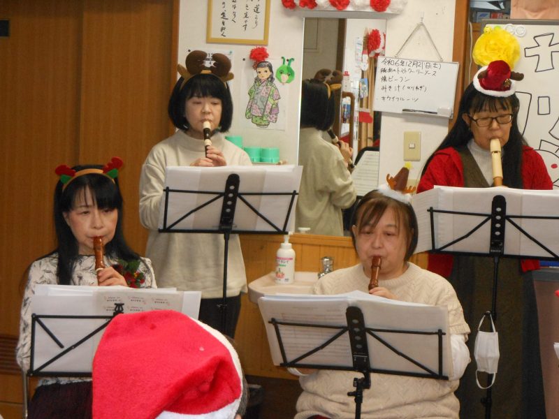 デイサービス施設でクリスマス曲を中心に30分間のリコーダー演奏をしてきました。