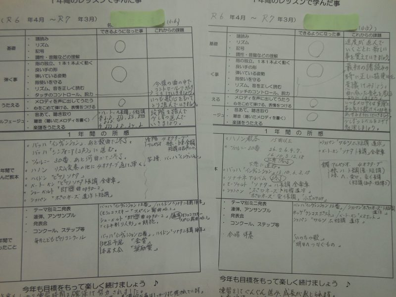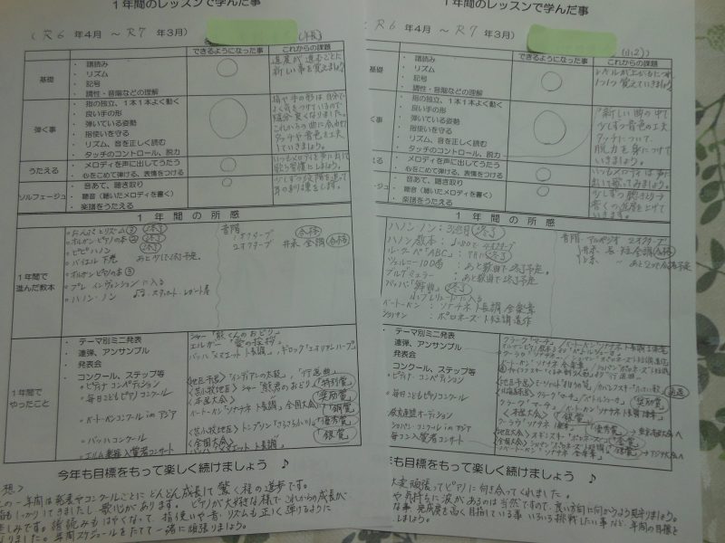 ・1年間のまとめをプリントして門下生・保護者の方にお渡ししました。