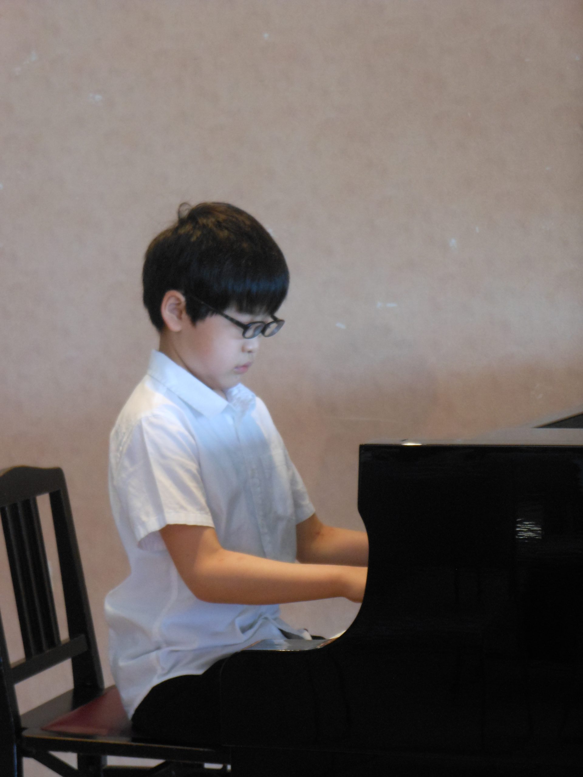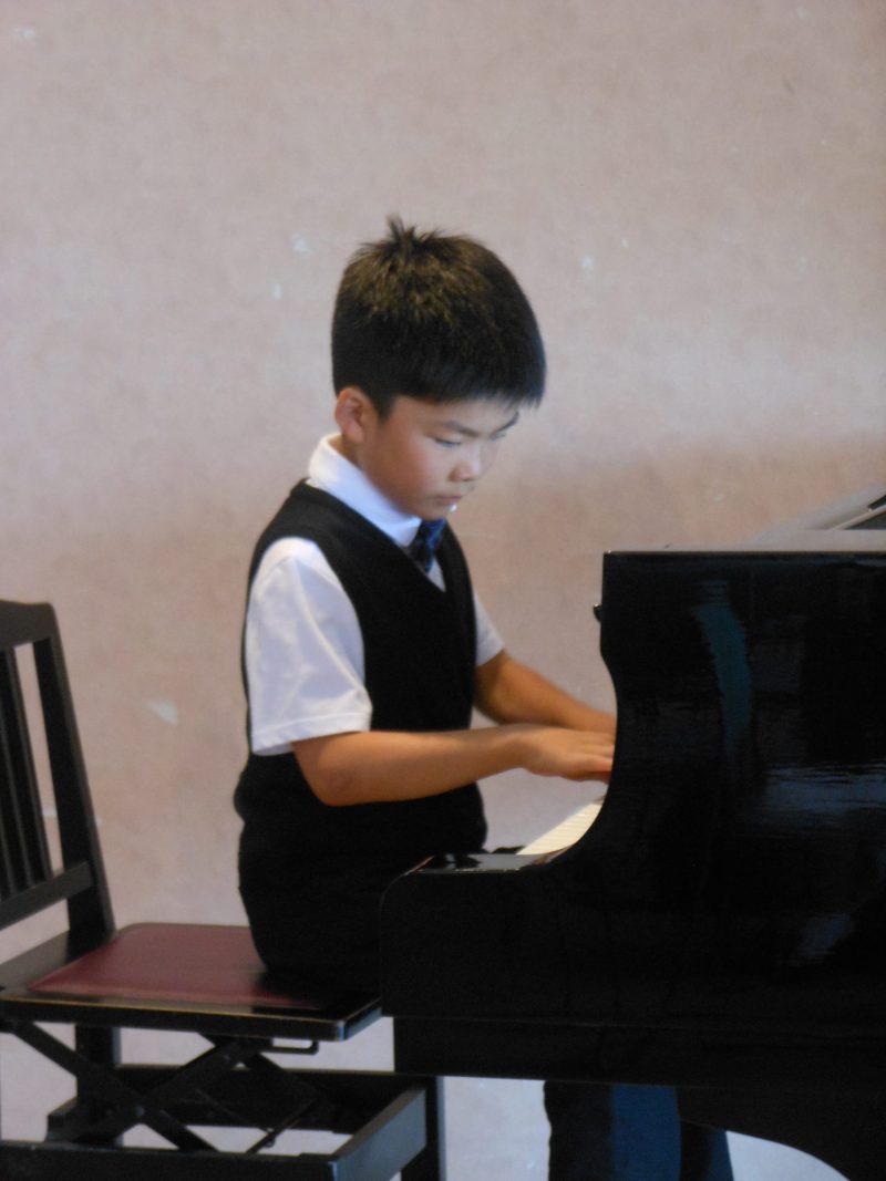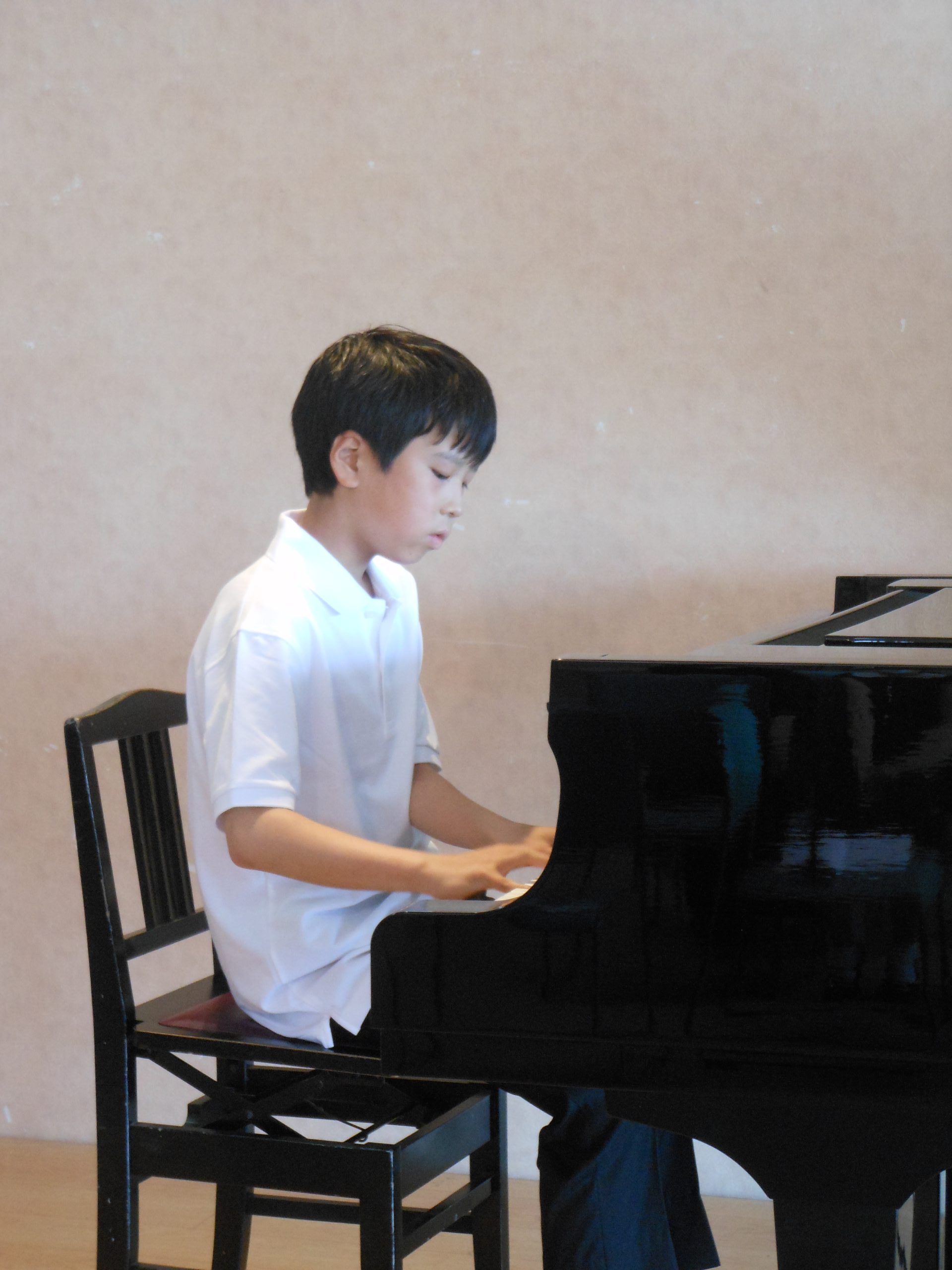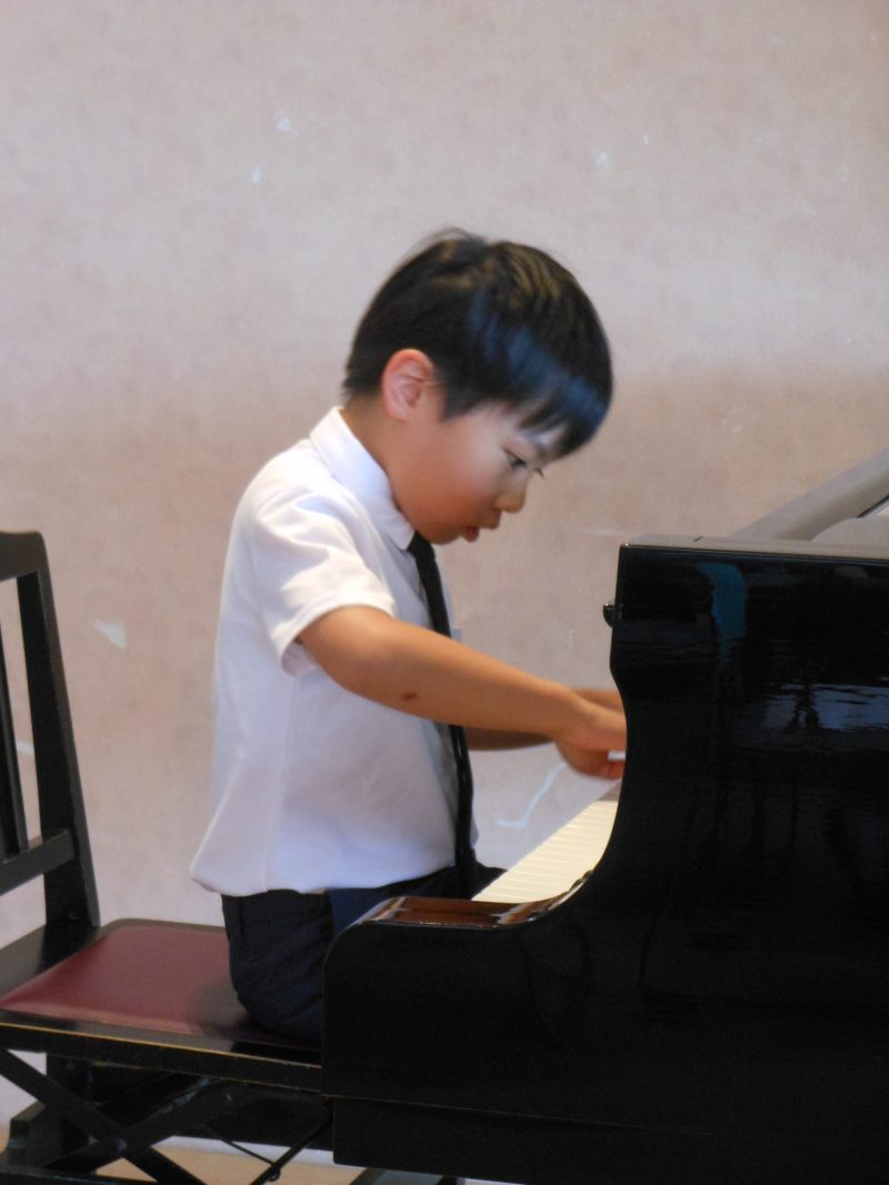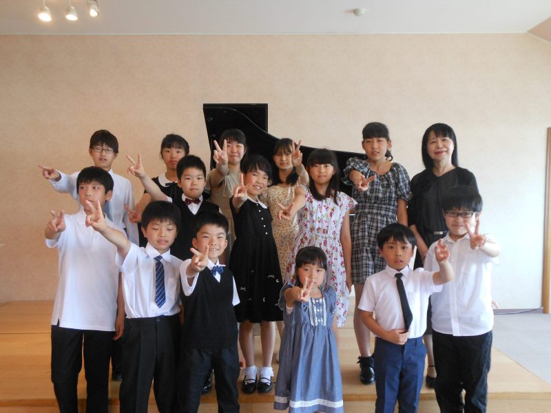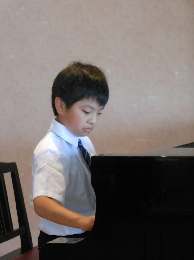 年齢や進度別に初級(1オクターブの長調の音階)、中級(2オクターブの長・短の音階とアルペジオ)、上級(4オクターブの長・短の音階とアルペジオ)を一緒に練習しました。