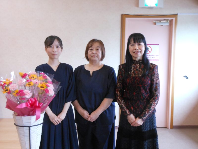 秋晴れの爽やかな午後、苫小牧での老舗のお菓子屋さんのホールで、2名のピアノの先生と一緒にそれぞれの大人の
