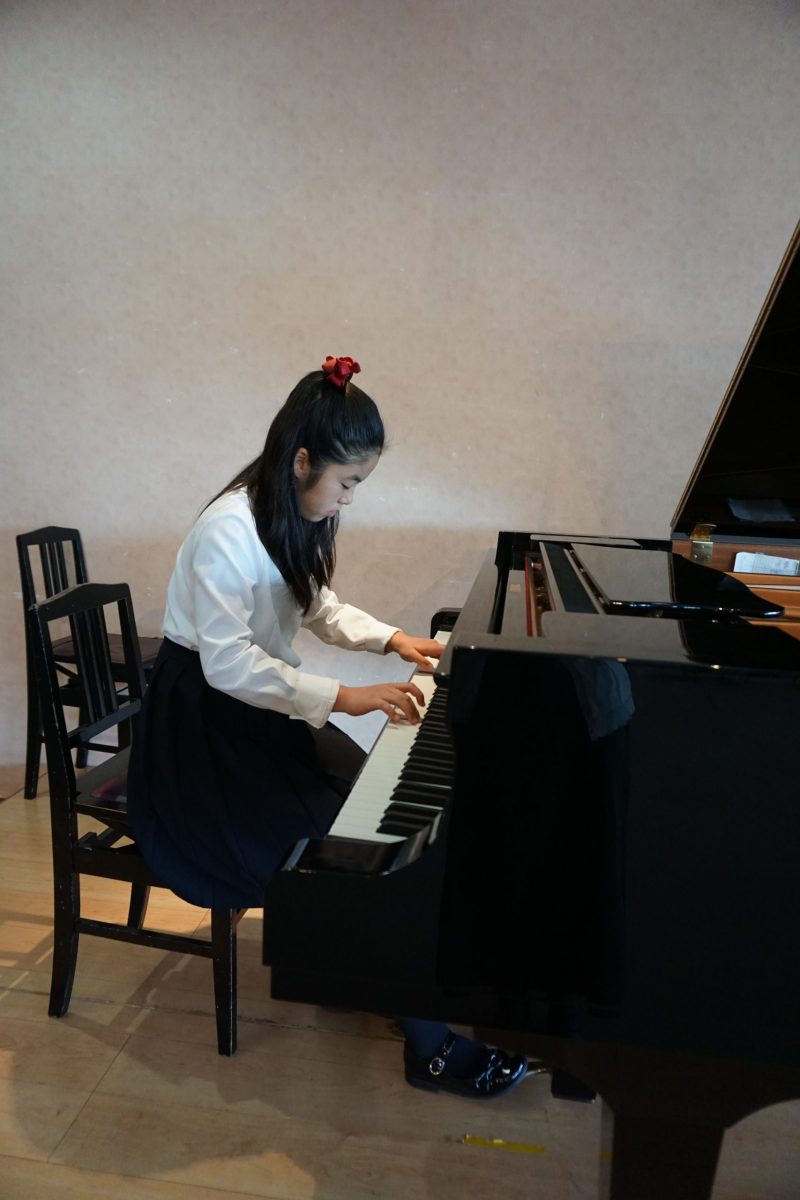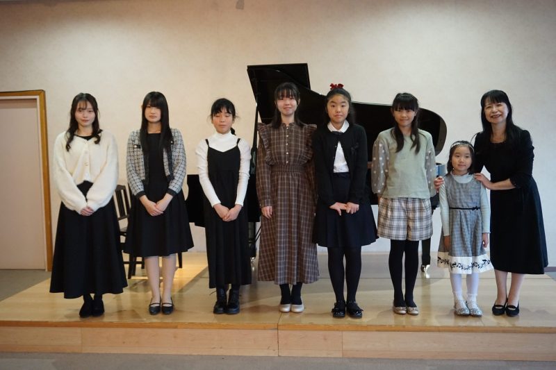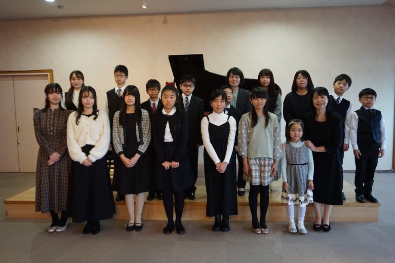 すっかり冬支度の11月の午後、市内老舗菓子店のホールで小1~高3までの14名の門下生が自分たちで選曲した曲を披露致しました。(インフルエンザで1名欠席)