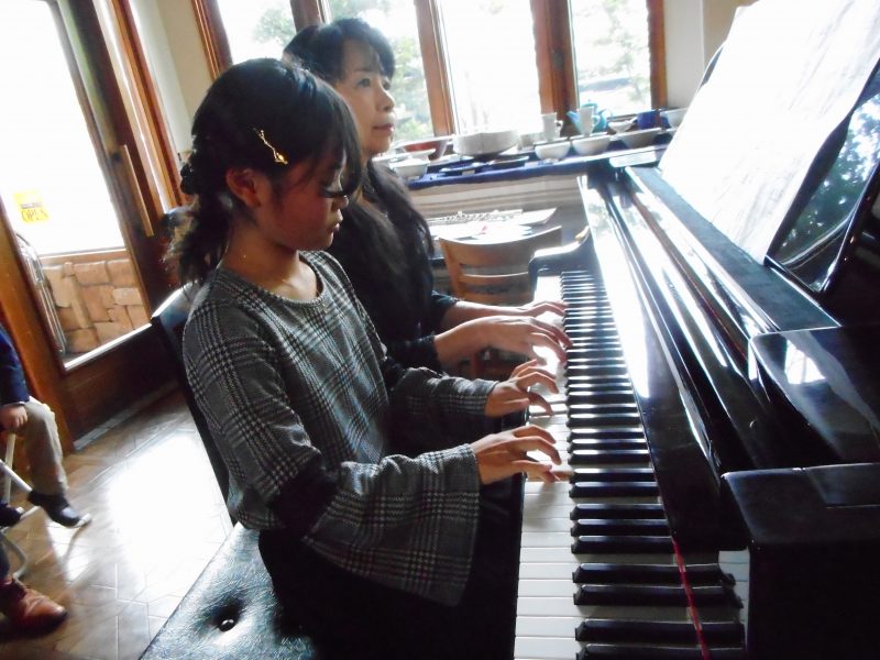 木々の葉が落ちる初冬の頃に恒例の「連弾・アンサンブル」ミニコンサートを グランドピアノがある市内のカフェをお借りして開催致しました。
